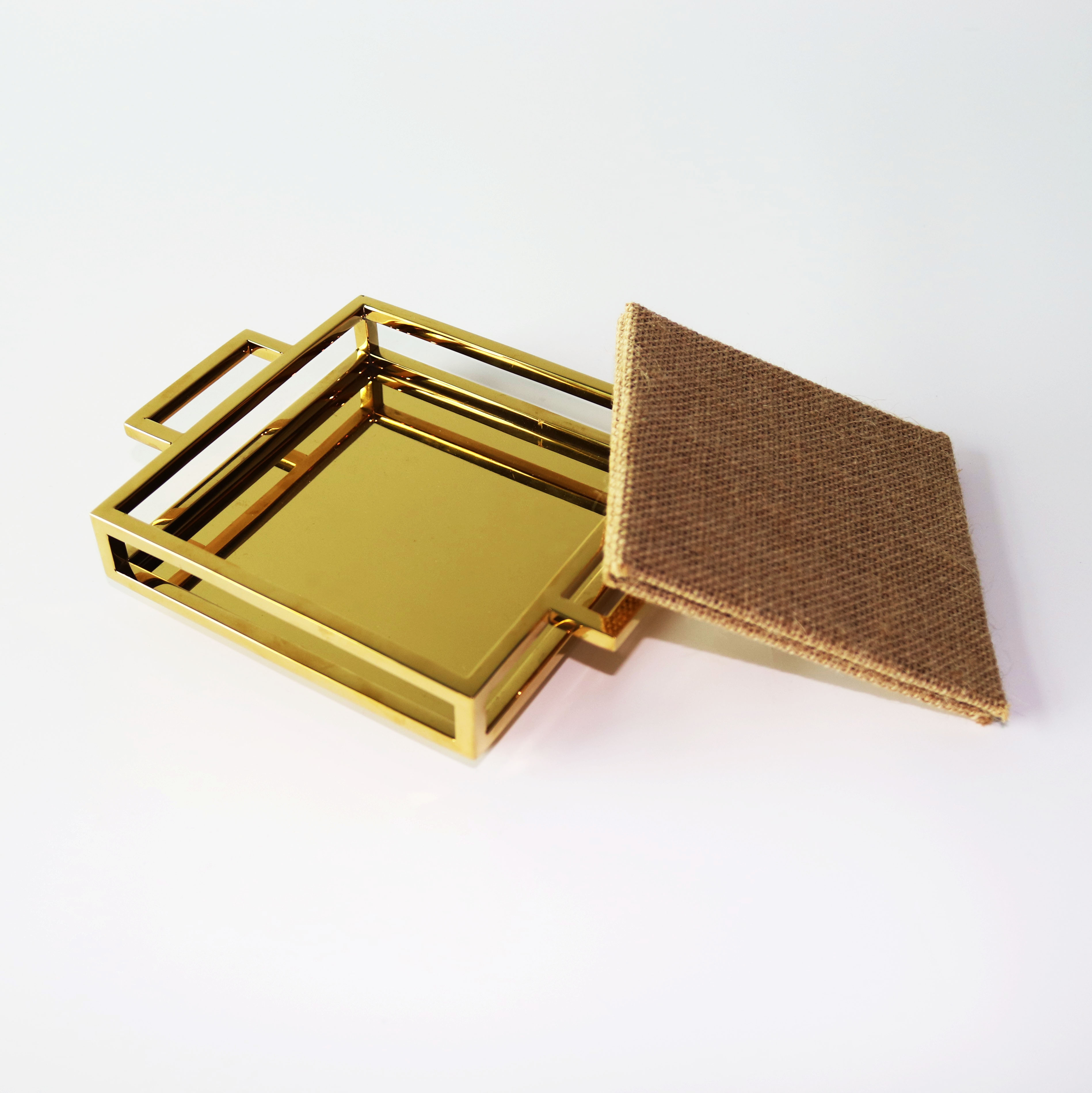 Minimalist Gold Stainless Steel Tray with Removable Natural Linen Inlay
