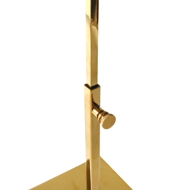 A key engineering feature is the height adjustment mechanism controlled by a cylindrical knob, enabling retailers to customize the display height for optimal product visibility. This flexibility makes the rack ideal for countertop presentations, trade shows, and boutique displays where space utilization is crucial.